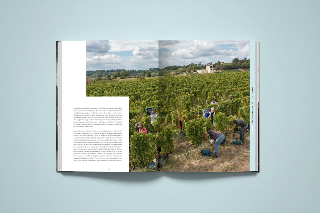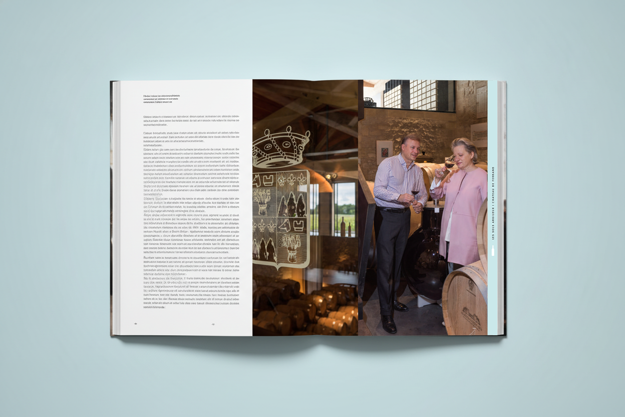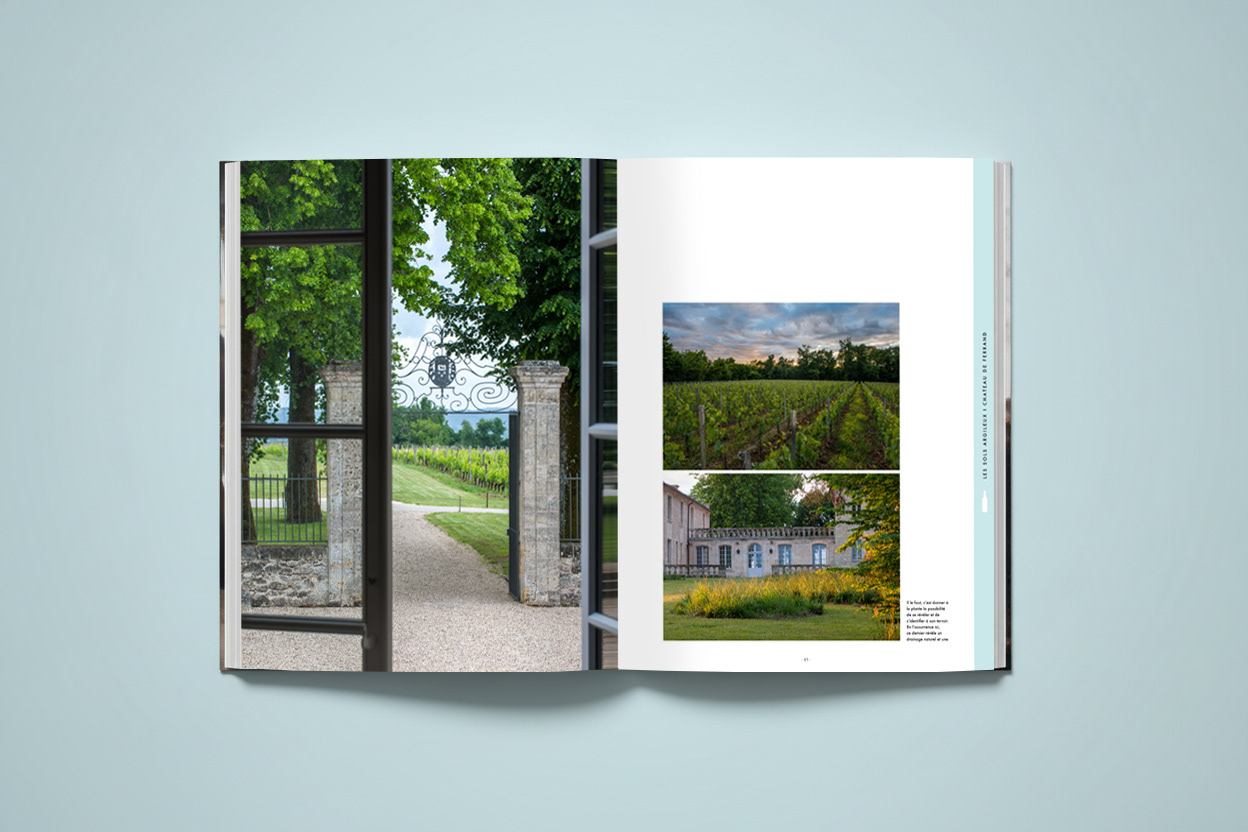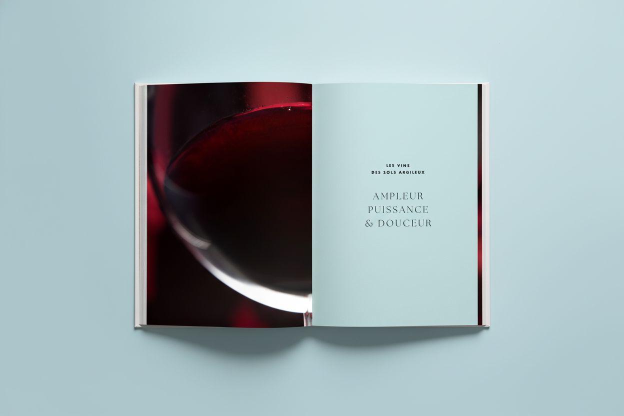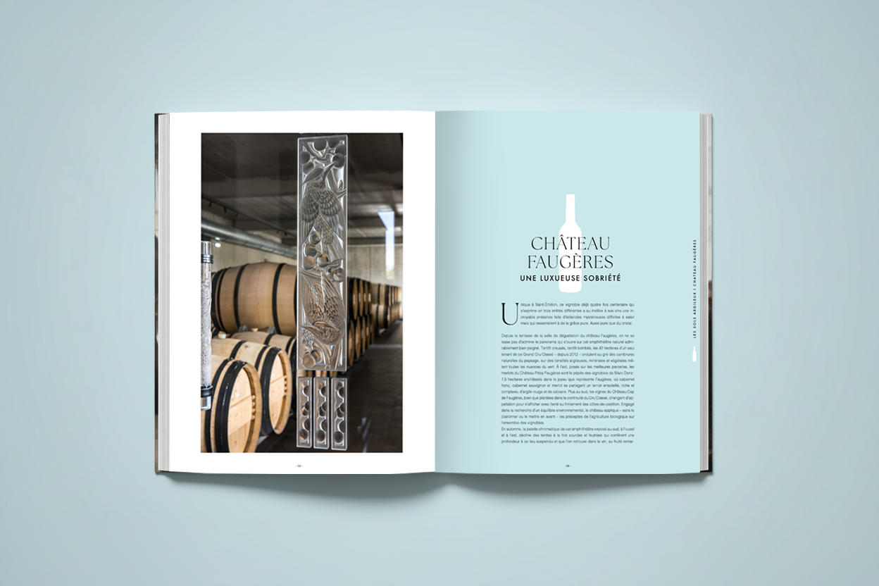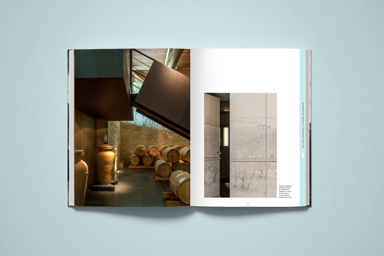 Pour ce prrojet de livre sur les vignobles de Saint Émilion, j'ai travaillé sur des recherches de mises en pages graphiques permettant d'articuler l'ouvrage autour des trois principaux types de sols de l'appellation.