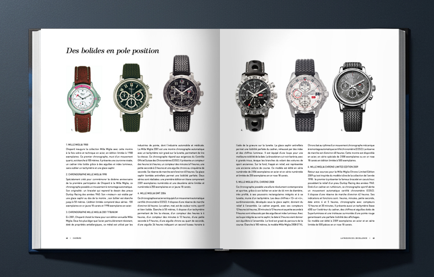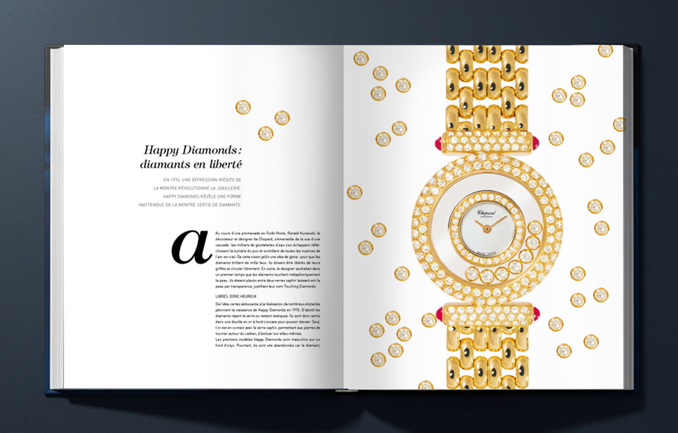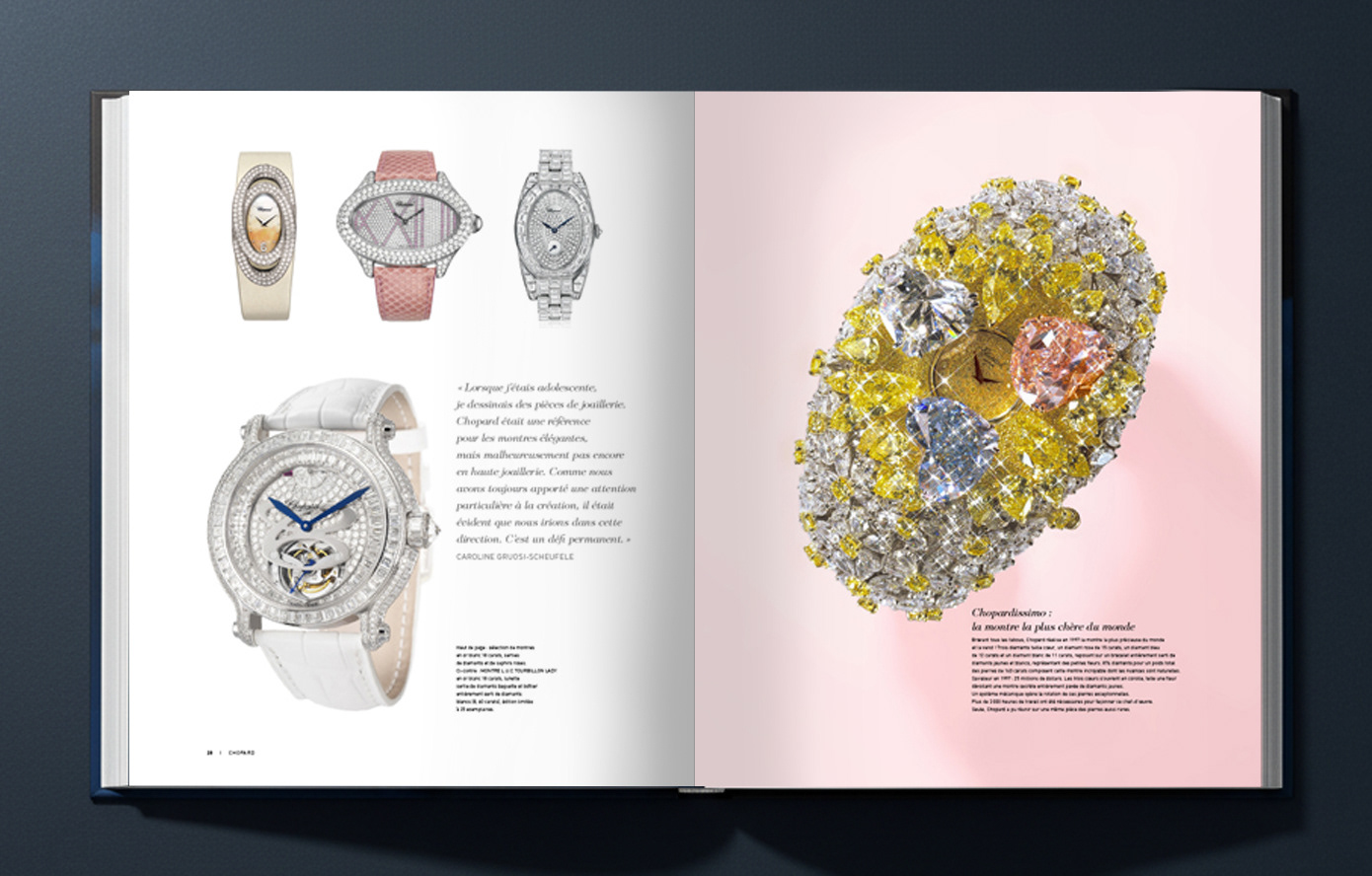 Pour le centenaire de Chopard, j'ai mis en page le livre célébrant l'anniversaire de la marque à travers son histoire, mêlant photos d'archives, savoir-faire d'hier et d'aujourd'hui, haute joaillerie et horlogerie de pointe.